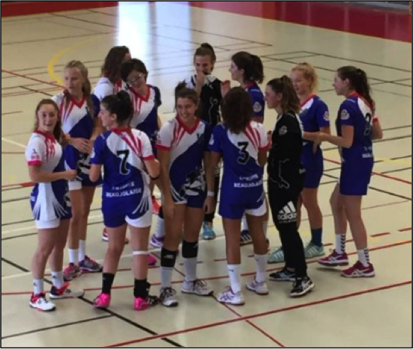 La défense rugueuse de nos filles, et les arrêts successifs de Clara permirent de finir le match à 21-16. Nos « Blairettes » et nos « Violettes » ne faisaient plus qu’une, « Entente Beaujolaise ».