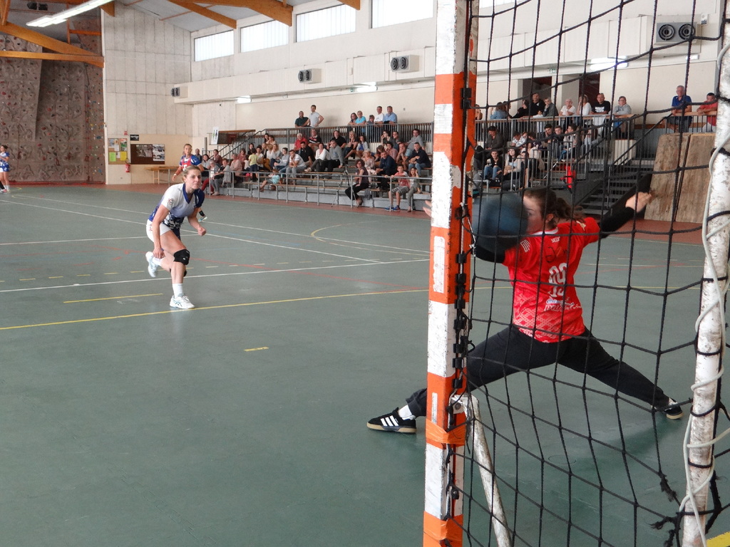 Après une entame de match équilibrée (6’ 4-4), l’équipe Iséroise a confirmé nos craintes en alliant accélération et précision : la moindre imprécision dans notre jeu de passe, ou relâchement en défense étant payé au prix fort par des contre-attaques imparables (16’ 6-10). 1er temps fort violet : sans paniquer ni se désunir, St Julien a su durcir sa défense pour mettre en échec l’attaque Iséroise, et su garder une bonne efficacité en attaque, à l’instar de Marine et Imen, permettant de finir la mi-temps avec le plus petit écart (14-15).