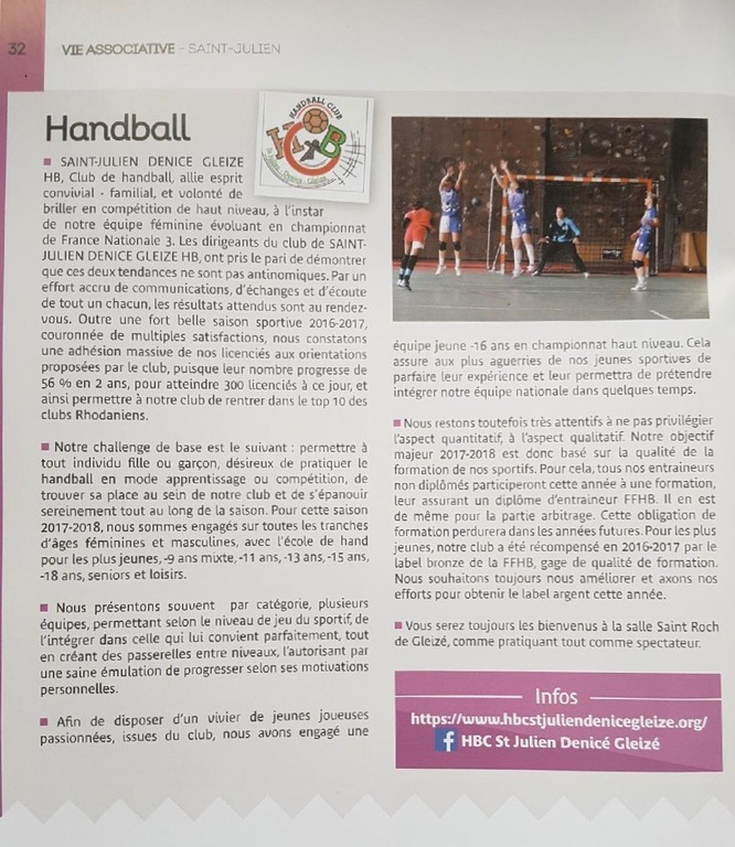 Une page avec un bel article sur le Club de Saint Julien Denicé Gleizé a été consacrée dans le bulletin municipal de Saint Julien.