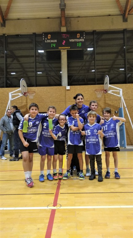 Ce sympathique groupe de jeunes handballeurs provenant en grande partie de la génération -9 ans 2017/2018, ramène sa première victoire de Belleville !