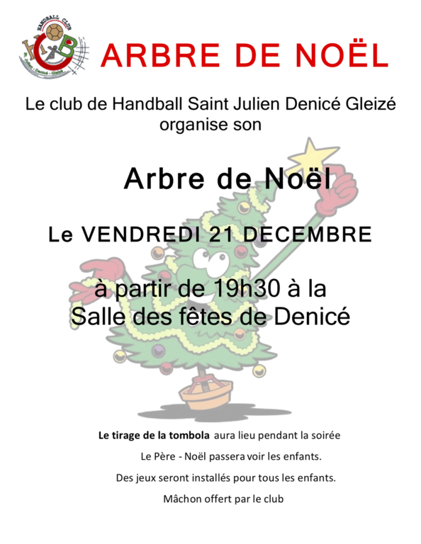 Le Noël du Club se déroulera le vendredi 21 décembre à partir de 19h30 à la Salle des fêtes de Denicé.