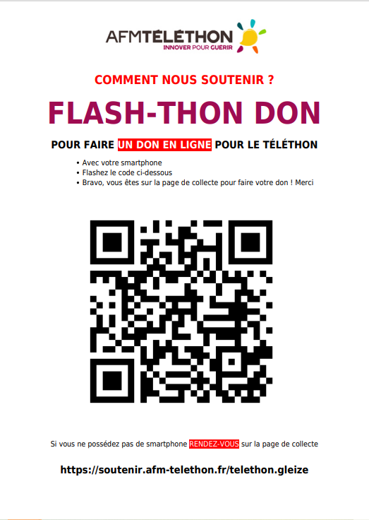 Pour consulter, partager ou donner, RV sur https://soutenir.afm-telethon.fr/telethon.gleize !